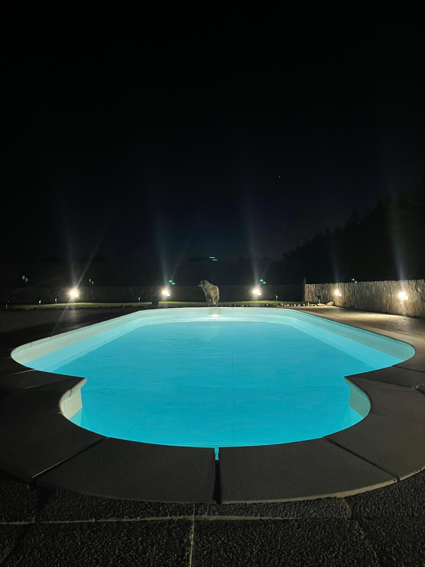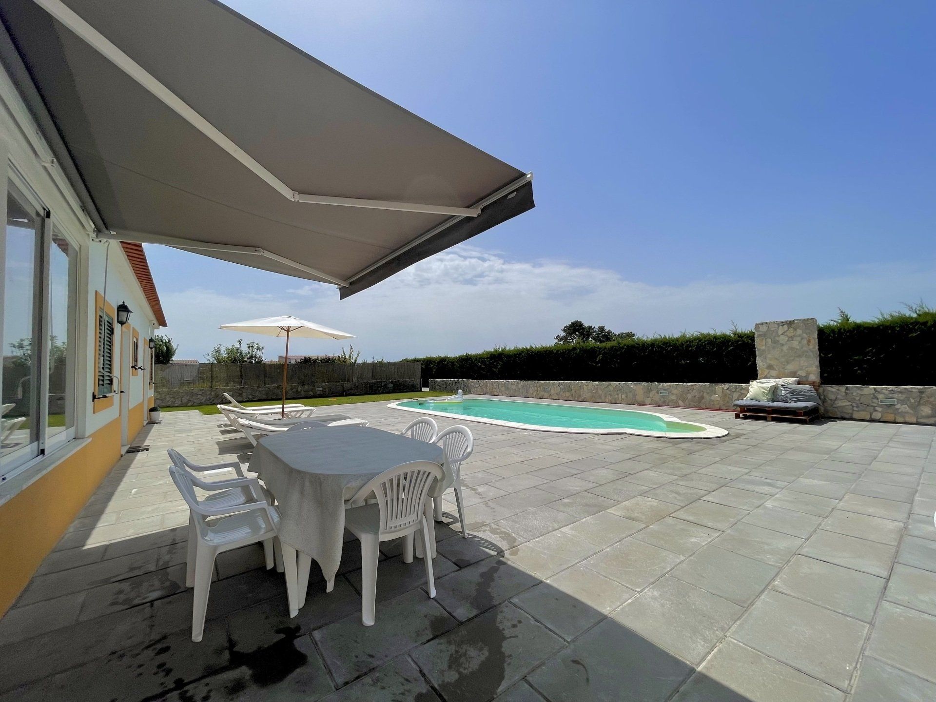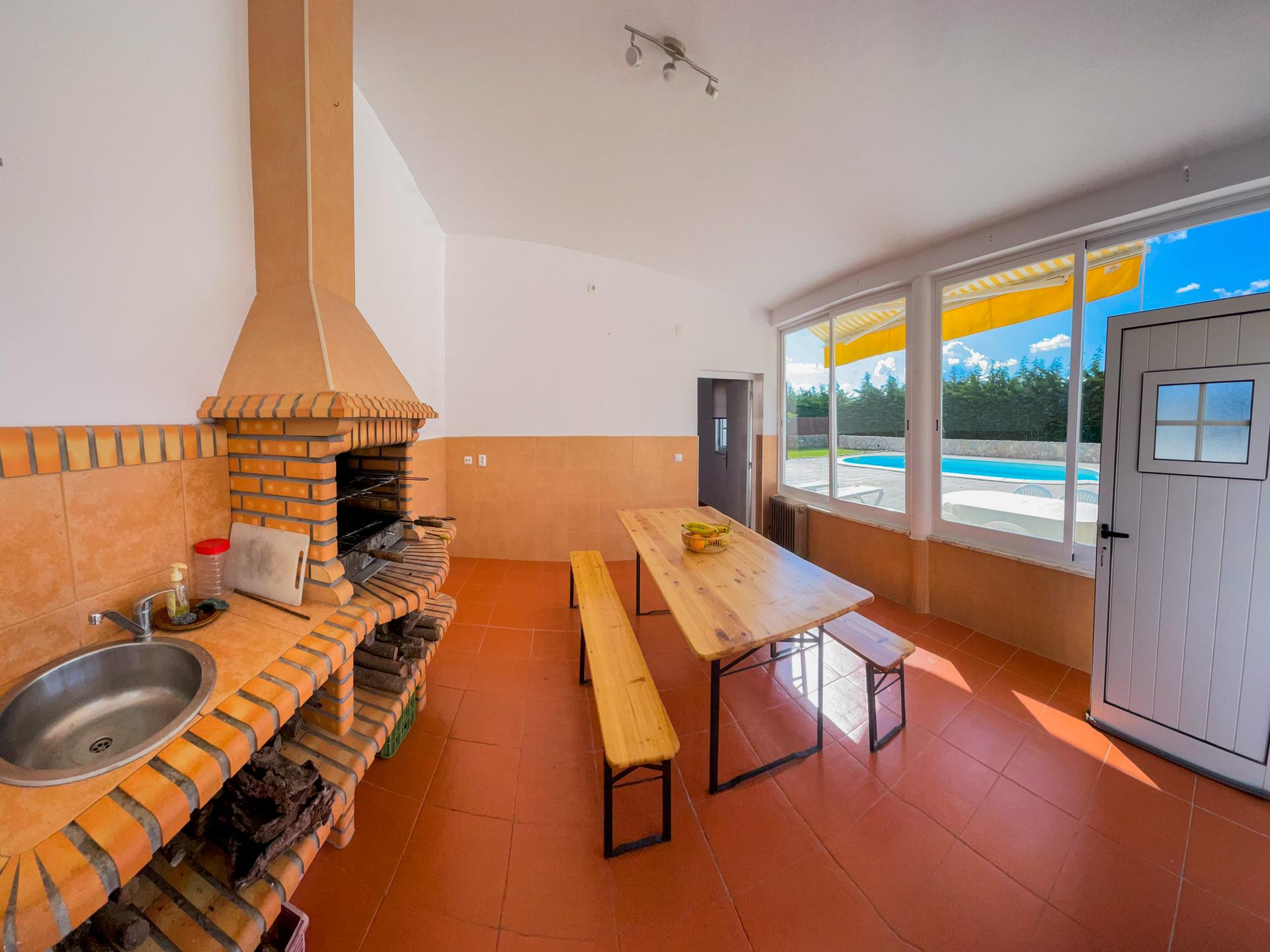 No exterior contém ainda uma zona com churrasqueira, uma piscina de 8m por 3,5m e uma casa de banho de apoio à piscina.