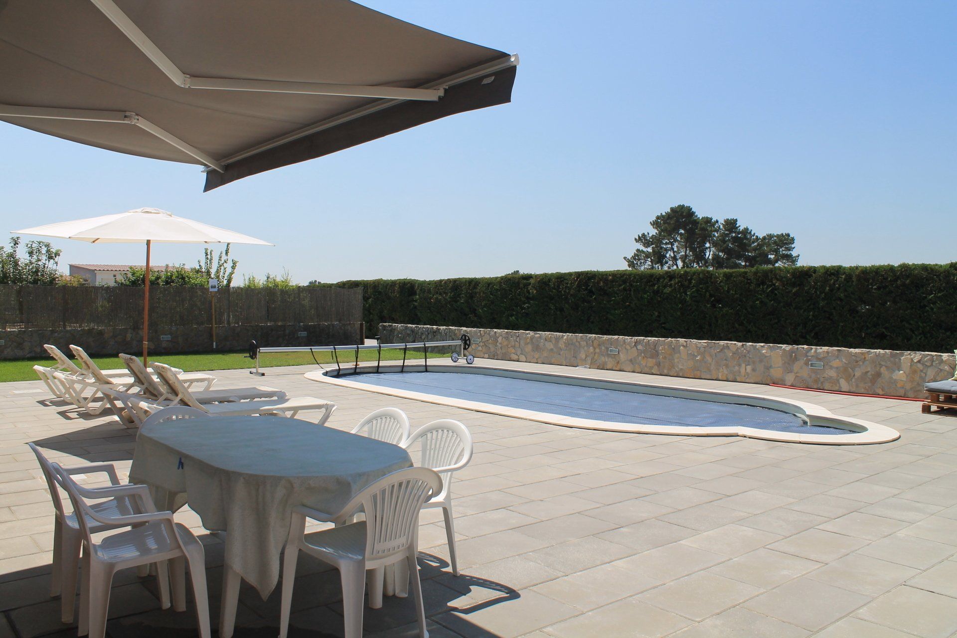 No exterior contém ainda uma zona com churrasqueira, uma piscina de 8m por 3,5m e uma casa de banho de apoio à piscina.